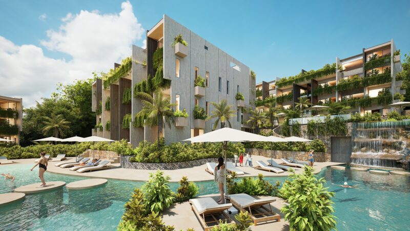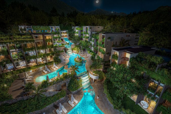 AZURA – ArchitectureKoh Phangan, Thailand 2025A mixed-use development that includes 8 blocks of resort and apartment units, all positioned to wrap around a series of cascading central pools. There is also a substantial commercial component that includes leisure, F&B and retail, total internal area of 10,900 m². The design emphasizes the integration of nature and architecture to create a lush, tropical living environment. The apartment blocks mimic the large granite boulders of the island that are intertwined with nature, whilst the waterfalls of Phangan are recreated within this green canyon. |