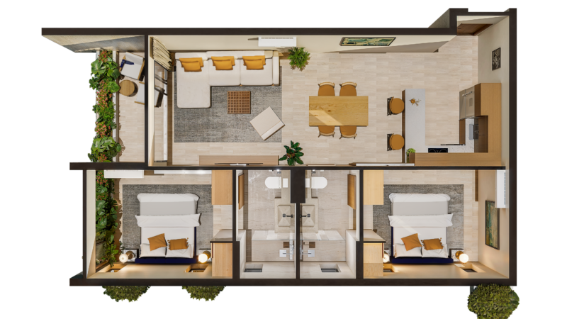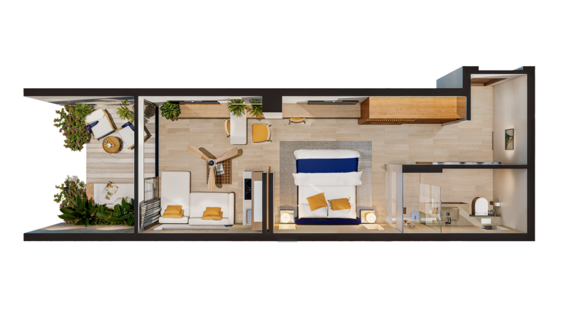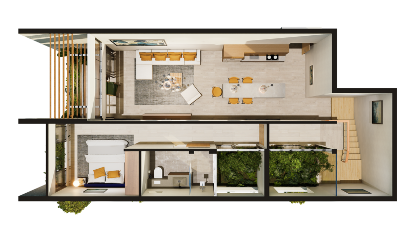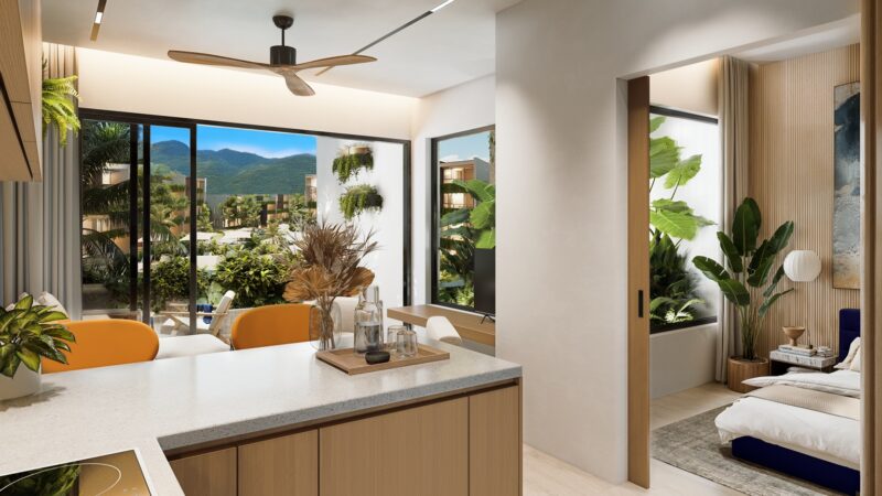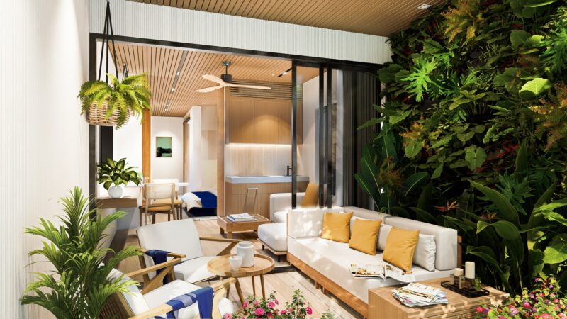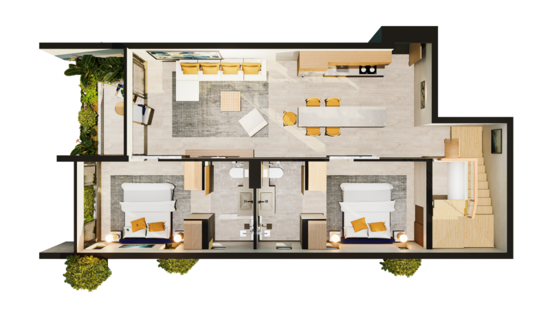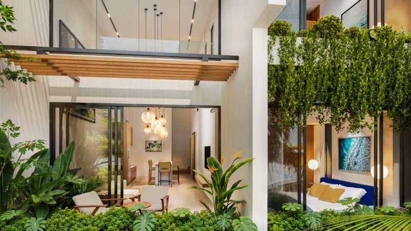 AZURA – InteriorsKoh Phangan, Thailand 2025Our designs for the interiors at Azura aim to draw in elements of the central garden greenery in to the internal spaces, this combined with the natural tones and finishes of the spaces help promote a sense of calm and relaxation. Connecting the interiors back to the landscape concepts of the architecture. Elements of the Azura branding colours also filter subtly into the interiors. The front of house spaces include the resort restaurant, gym, reception and co-working space. In addition we have also designed the apartment units in the residential and resort blocks (studio, large studio, 1 bedroom, 2 bedroom & a 3 bedroom penthouse). |
